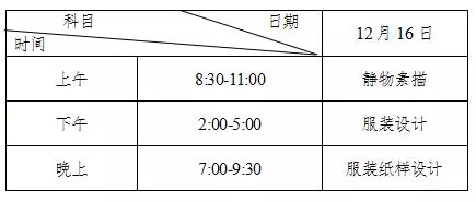 静物素描80分(考试时量150分钟)、服装设计110分(考试时量180分钟)、服装纸样设计110分(考试时量150分钟)、服装工艺90分(考试时量120分钟),满分390分。